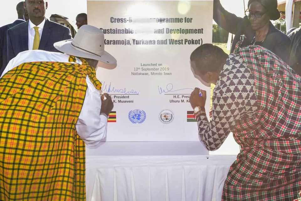 The two leaders also witnessed the signing of a joint Memorandum of Understanding between the two governments to ensure cross-border programme for sustainable peace and socio-economic transformation among the pastoralist communities of the Karimojong of Uganda the Turkana and West Pokot of Kenya. Uganda’s Minister for Karamoja Affairs, John Byabagambi and Kenya’s Cabinet Secretary for Devolution, Eugene Wamalwa signed for their respective governments.
