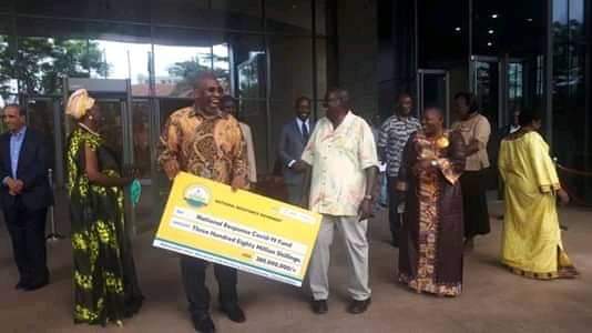 The donation was presented to the Chairman of the National Task Force Rt. Hon. Dr. Ruhankana Rugunda by the 1st National Vice Chairperson Rt. Hon. Al-Hajji Moses Kigongo during the brief function held at OPM and witnessed by the Secretaty General Rt. Hon. Justine Kasule Lumumba and the National Treasurer Hon. Rose Namayanja Nsereko.
