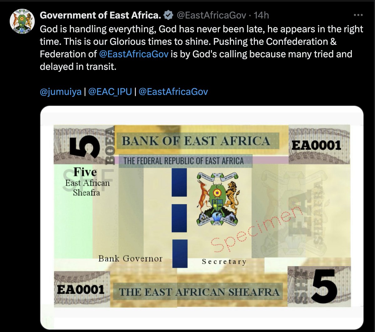 “The East African Sheafra of SHF.5 Currency Note of fuv5 has finally landed,” read the post, an account which the EAC has now dismissed to be false.