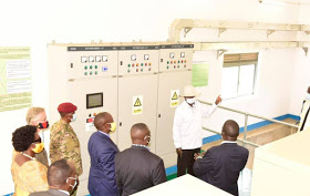 The President was accompanied by German Ambassador, Mathias Schauer, Deputy Speaker Jacob Oulanyah, State ministers; Beatrice Anywar and Ronald Kibuule, Board Chairman Eng. Badru M.Kiggundu, Deputy NRM Secretary General Richard Todwong and Deputy MD Technical Services Eng. Johnson Amayo.