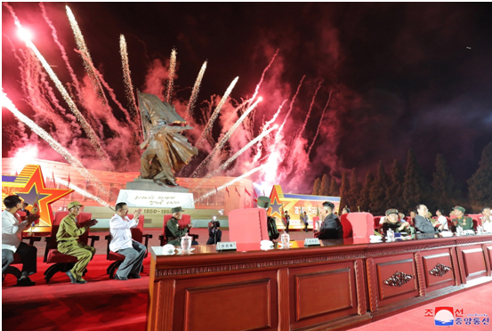 The moment, fireworks were displayed and all the participants raised stormy cheers of “Hurrah!” in great reverence for Kim Jong Un who is the symbol of the might of the ever-victorious WPK and dignified DPRK and a banner of all the victories and glory.
